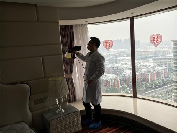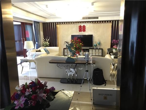 客廳大大的喜字!空氣治理專員在客廳進(jìn)行檢測(cè)!