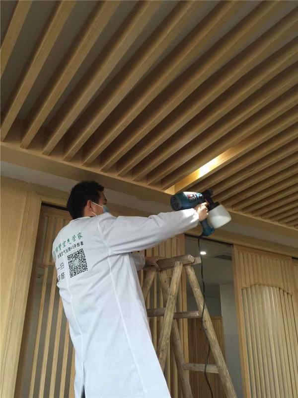 辦公室超多木質(zhì)板的壁廚設(shè)計(jì),都需要進(jìn)行除醛藥劑噴涂!