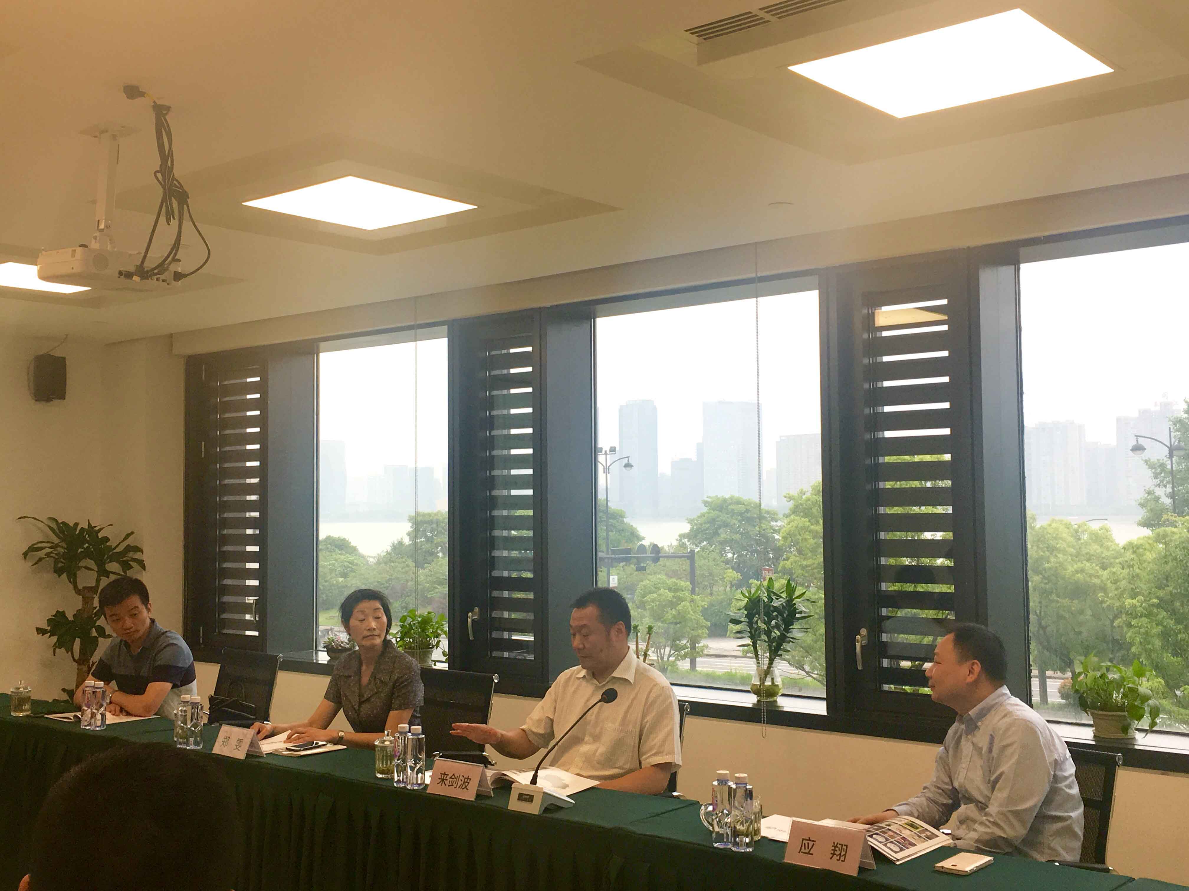 上城區(qū)區(qū)委常委、統(tǒng)戰(zhàn)部部長(zhǎng)來(lái)劍波同志(右二)、南星街道副主任應(yīng)翔同志(右一)與公司高管合影