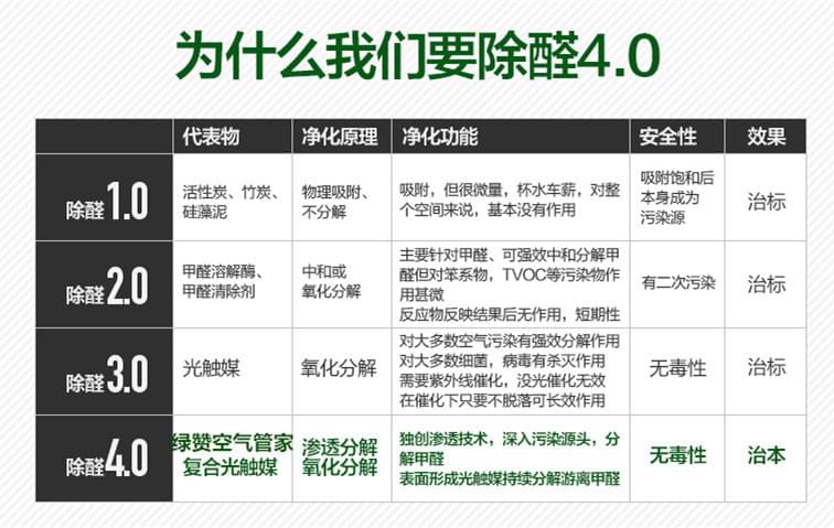 創(chuàng)綠家環(huán)??萍加邢薰鹃_創(chuàng)了全屋空氣環(huán)境治理4.0的新時(shí)代??!“綠贊空氣管家”采用復(fù)合納米光觸媒滲透技術(shù),分類除醛,直擊源頭!一次除醛!長(zhǎng)期有效!