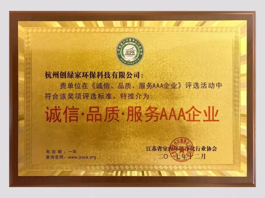 2018年1月13日,“中國室內(nèi)環(huán)境凈化行業(yè)協(xié)會(huì)聯(lián)盟”與“江蘇省室內(nèi)環(huán)境凈化行業(yè)協(xié)會(huì)”聯(lián)合舉辦的首屆“中國室內(nèi)環(huán)保行業(yè)創(chuàng)新創(chuàng)優(yōu)、融合發(fā)展”高峰技術(shù)年會(huì)在中國南京召開,我司榮獲誠信加盟服務(wù)單位、“誠信、品質(zhì)、服務(wù)”AAA企業(yè)、示范工程獎(jiǎng)、科技創(chuàng)新產(chǎn)品獎(jiǎng)等多項(xiàng)榮譽(yù)。