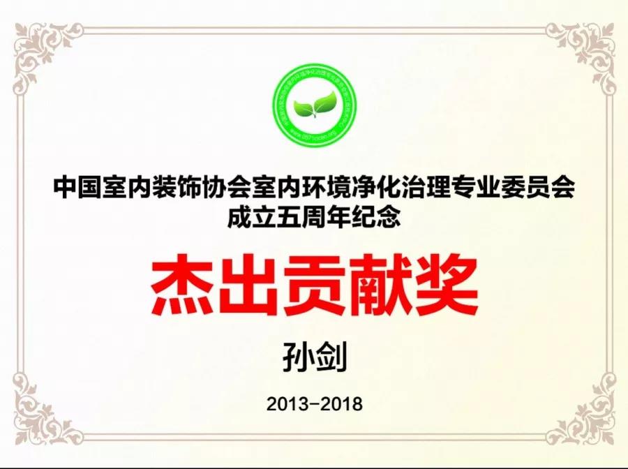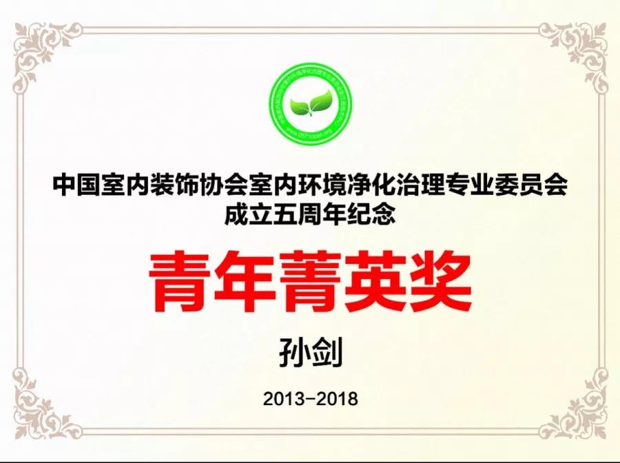 2018年12月19日,中國室內(nèi)環(huán)境凈化治理行業(yè)第五屆技術(shù)創(chuàng)新分享會(huì)在北京新聞大廈長安發(fā)布廳舉行。創(chuàng)綠家環(huán)??偛脤O劍榮獲凈化委成立5周年杰出貢獻(xiàn)獎(jiǎng)和青年菁英獎(jiǎng)。
